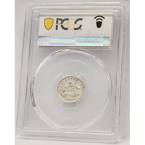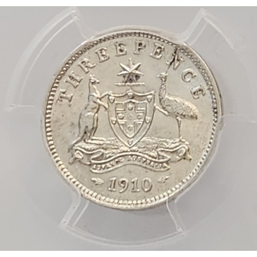 AUSTRALIA 1910 . THREEPENCE . PCGS AU58