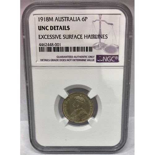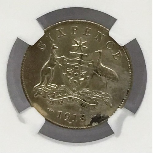 Australia 1918M. Sixpence. NGC UNCIRCULATED. Extremely hard to find in this
