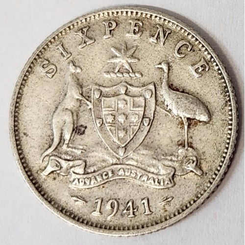 Australia 1941 Sixpence. Very Nice Tone. Very Scarce. Low Mintage. High Book