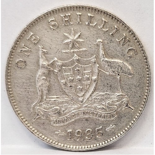 Australia 1935 One 1 Shilling. 8 Pearls. Full Centre Diamond. Hard Date.