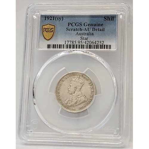 Australia 1921 One 1 Shilling. Star. PCGS AU Detail. Genuine. Low Mintage. Key