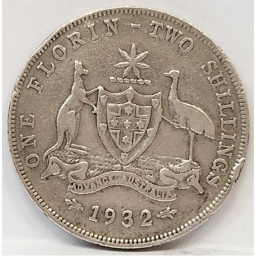 Australia 1932 Florin. Full Band Advance Australia. Key Date. Rare. Low Mintage.