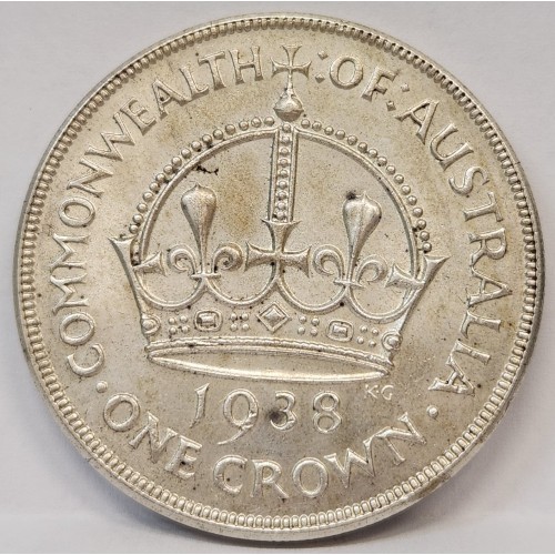 Australia 1938 Crown. Rare Date. Minor Marks. High Grade. Very Scarce