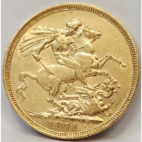 Australia 1871 S One 1 Sovereign. Syndey. Gold. Variety. Large B.P. Highest
