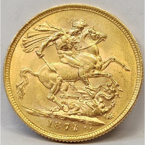 AUSTRALIA 1874 . ONE 1 SOVEREIGN . SYDNEY . GOLD . MINOR BAG MARKS