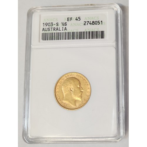 Australia 1903 S Half 1/2 Sovereign. Sydney. Gold. Slabbed. ANACS EF45. Rare.