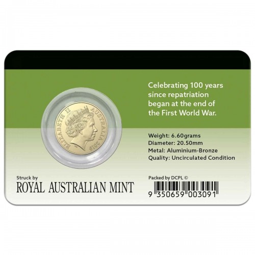 Australia 2019. Coloured Two 2 Dollar Coin. Carded Repatriation Centenary