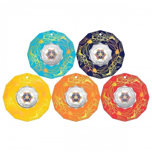 Australia 2022 Fifty 50 Cents Coins. Christmas Set of 5. Coloured Coins.