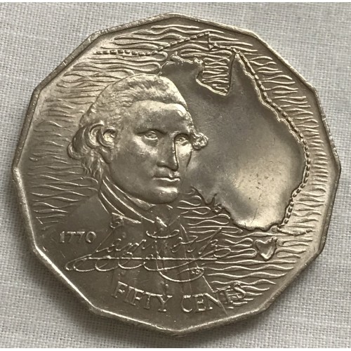 Australia 197. Fifty 50 Cents Coin. Captain Cook. Very Scarce. Uncirculated