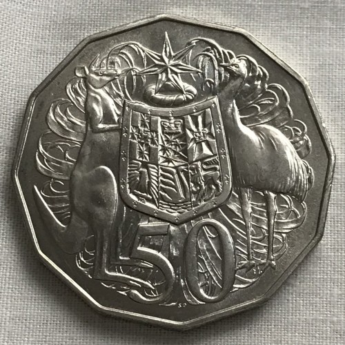 Australia 1983. Fifty 50 Cents Coin. Coat of Arms. Choice Grade. Uncirculated