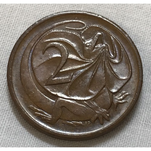 Australia 1971. Two 2 Cents Coin. Frilled Neck Lizard. Very Scarce. Uncirculated