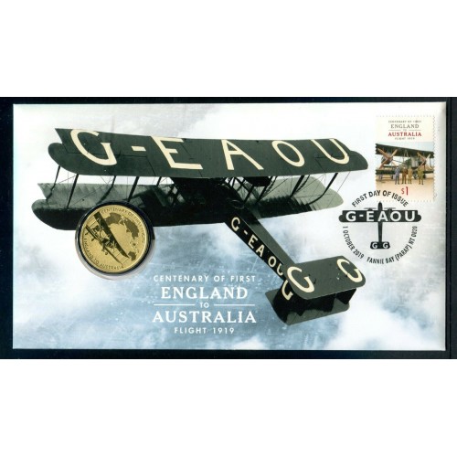 AUSTRALIA 2019 . ONE 1 DOLLAR . CENTENARY OF FIRST FLIGHT . ENGLAND TO AUSTRALIA . G-EAOU PNC