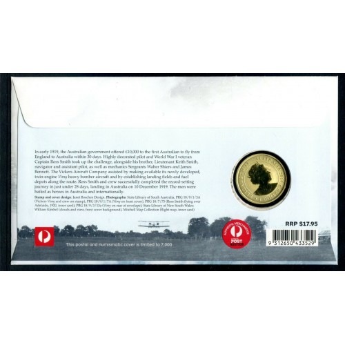 Australia 1919-2019. One 1 Dollar. Centenary of First Flight. England to Australia.