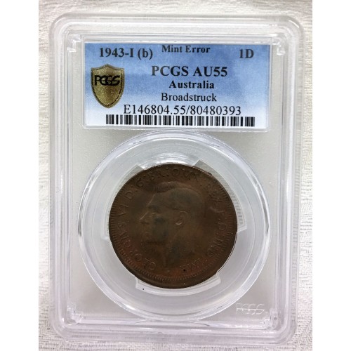 AUSTRALIA 1943I . ONE 1 PENNY . MINT ERROR . PCGS AU55