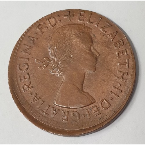 Australia 1963 One 1 Penny. Error. Large Lip .Off Centre. Very Scarce.