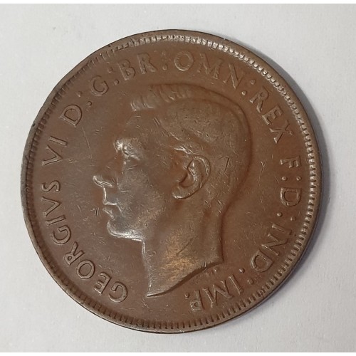 Australia 1941 One 1 Penny. Error. Brockage Behind the Roo. The Date and