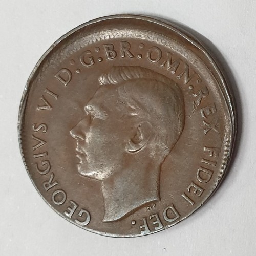 Australia 1950Y. Half 1/2 Penny. Error. Large Mis-Strike. Off Centre. Very Scarce.