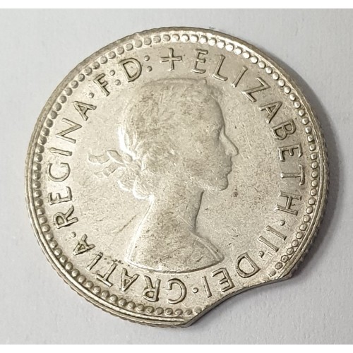 Australia 1961 Sixpence. Error. Clipped Bitten Edge. Scarce. Nice Coin