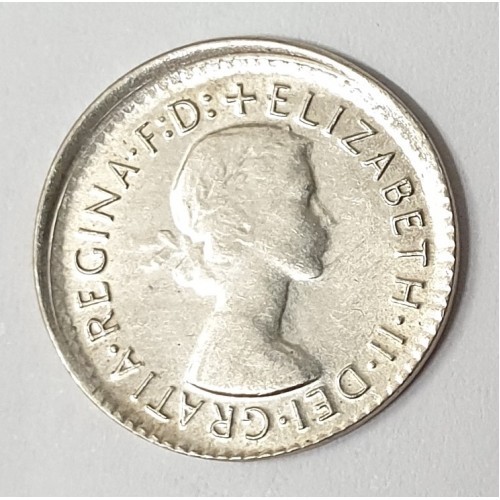 Australia 1959 Threepence. Error .Off Centre Mis-Strike. Very Scarce.