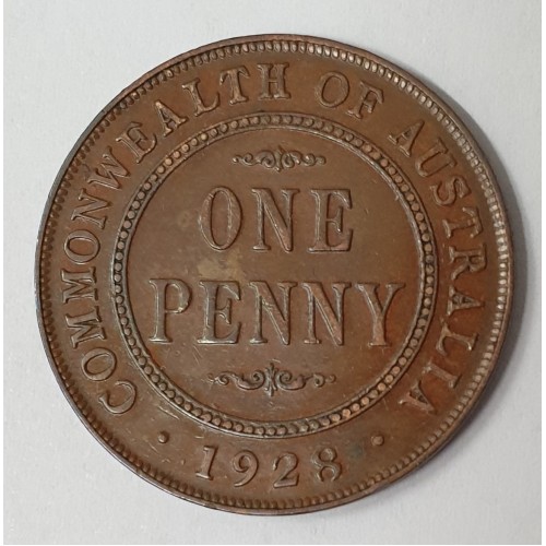 AUSTRALIA 1928 . ONE 1 PENNY . ERROR . BROKEN 8