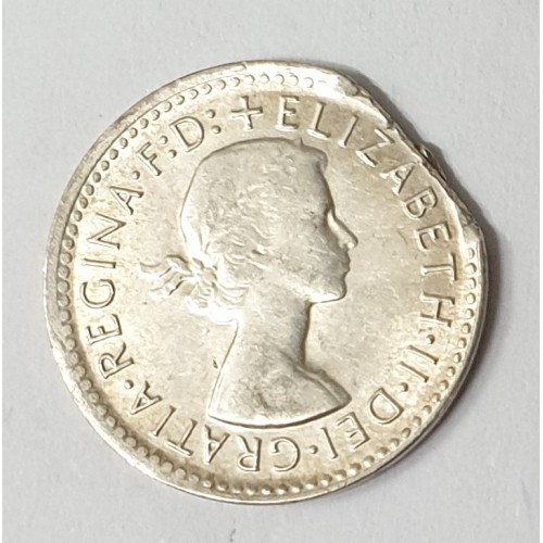 Australia 1963 Threepence. Error. Clipped Planchet. Very Scarce. Uncirculated