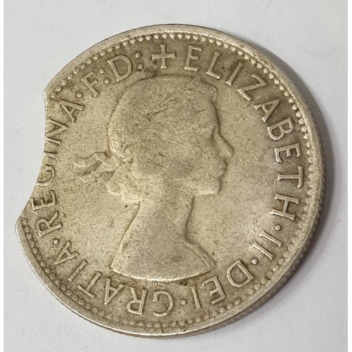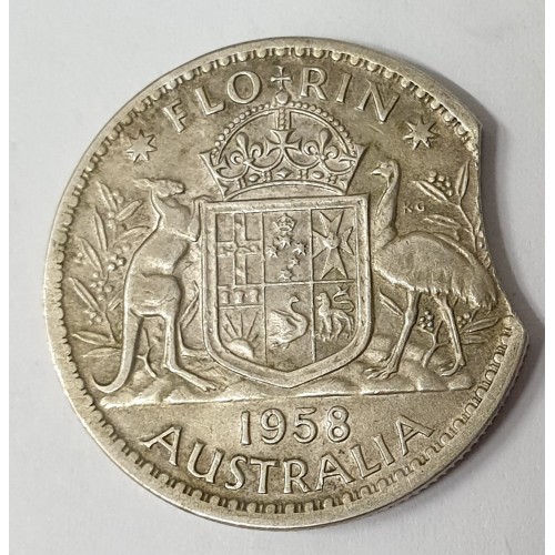 Australia 1958 Florin. Error. Clipped Bitten Edge. Very Scarce. Collectable