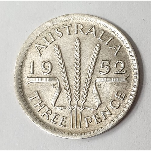 Australia 1952 Threepence. Error. Minor Mis-Strike. Off Centre. Scarce.