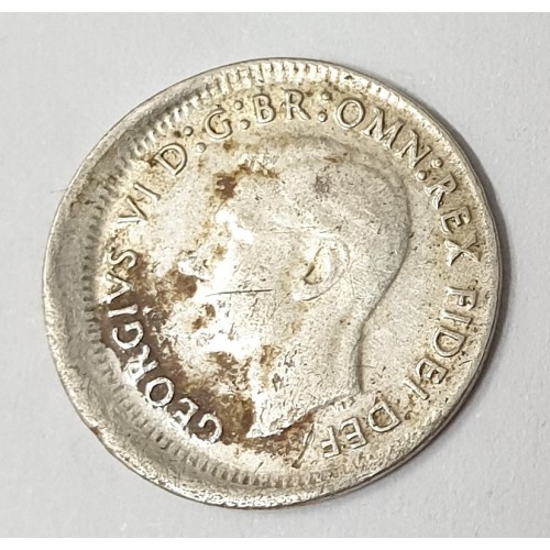 Australia 1952 Threepence. Error. Off Centre. Scarce Type