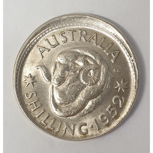 Australia 1952 One 1 Shilling. Error. 15% MIs-Strike. Off Centre. Rare. Uncirculated