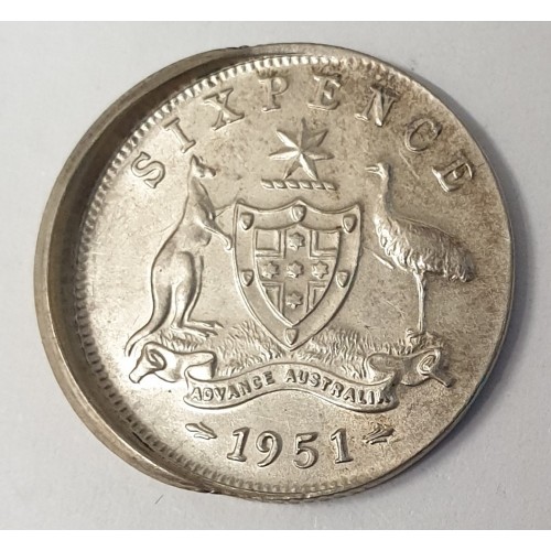 Australia 1951 Sixpence. Error. Large Lip. Off Centre. Scarce. Uncirculated