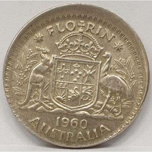 Australia 1960 Florin .Error. Mis-Strike. Off Centre Lip. Florins are Extremely