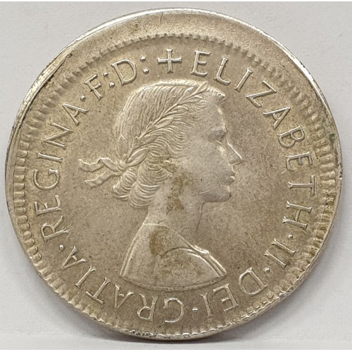 AUSTRALIA 1960 . FLORIN . ERROR . MIS-STRIKE . OFF CENTRE LIP