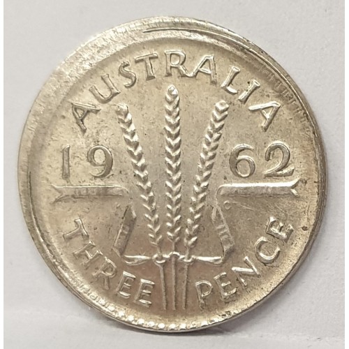 Australia 1962. Threepence. Error. Mis-Strike. Nice Lip. Very Scarce.