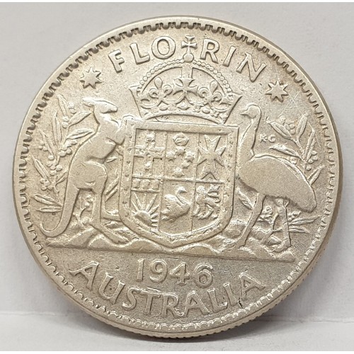 AUSTRALIA 1946 . FLORIN . ERROR / VARIETY . LARGE LOOP IN 6
