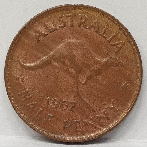 AUSTRALIA 1962 . HALF 1/2 PENNY . ERROR . WEAK STRIKE IN LEGEND