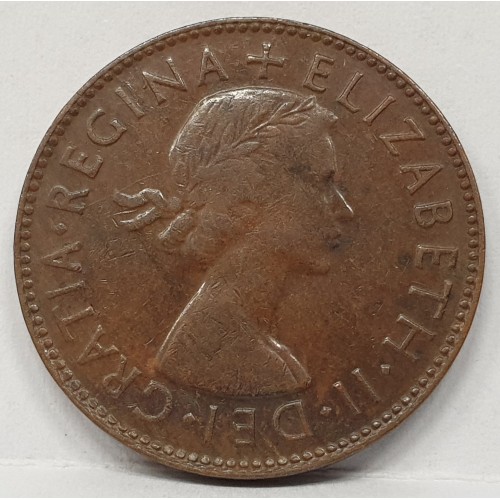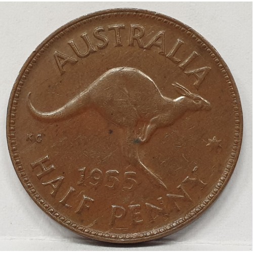 Australia 1955 Half 1/2 Penny. Error. Metal Flaw. Weak Date Strike. Extra Fine