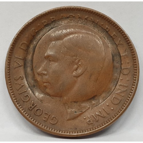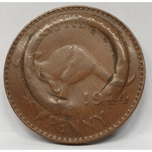 Australia 1944 One 1 Penny. Major Error. Stamped with Half Penny. Very Unusal.