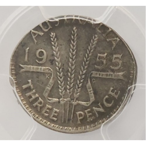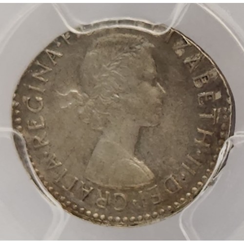 Australia 1955 Threepence. Slabbed. Mint Error. Struck on Eliptical Flan.