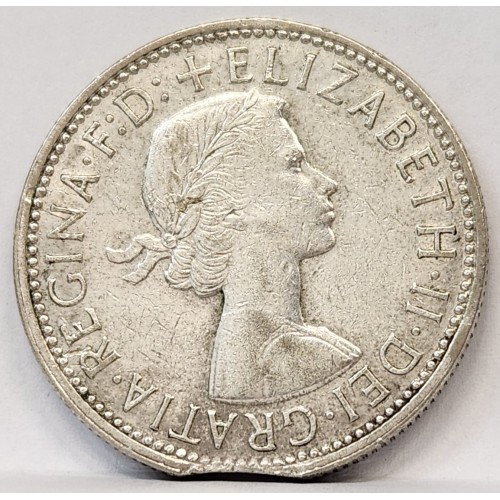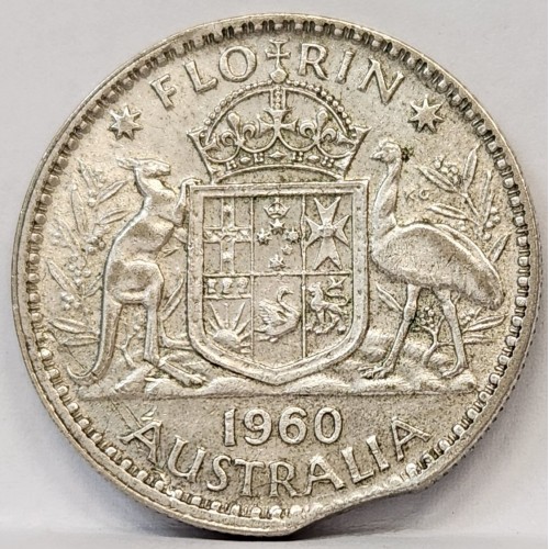 Australia 1960 Florin. Error. Clipped Planchetd. Very Scarce