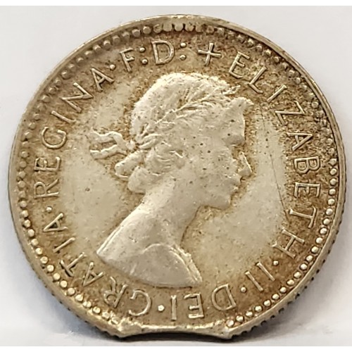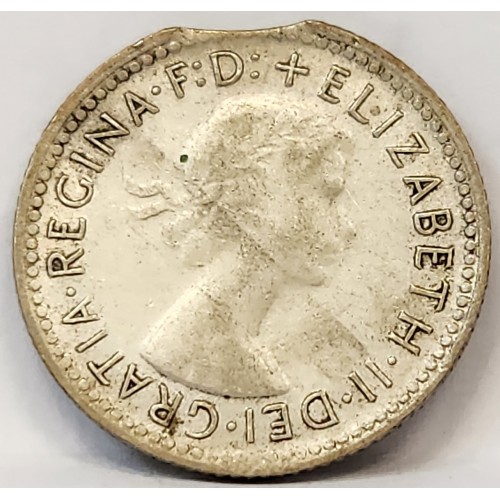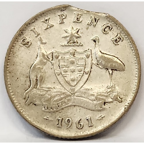 AUSTRALIA 1961 . SIXPENCE . ERROR . CLIPPED PLANCHET . BITTEN EDGE