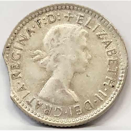 Australia 1960 Sixpence. Error. Bitten Edge. Clipped Planchet.