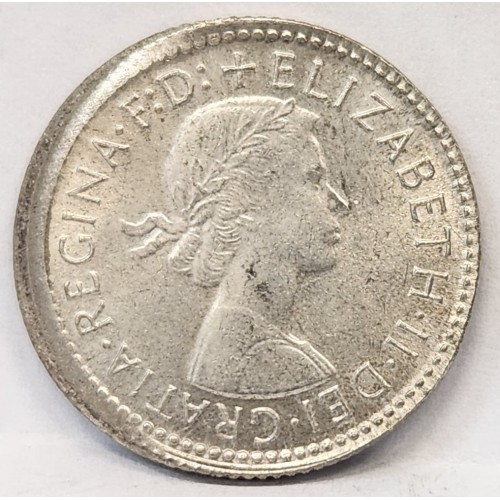 Australia 1960 Sixpence. Error. Struck Off Centre with Big Lip.