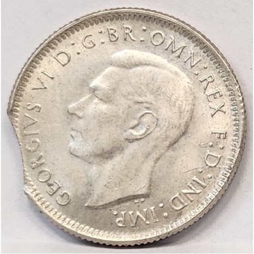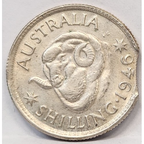 Austrtalia 1946 One 1 Shilling. Error. Bitten Edge Clipped. Die Cracks on Neck