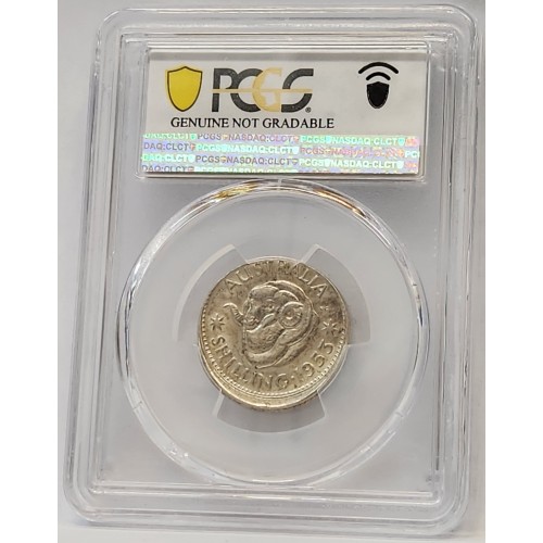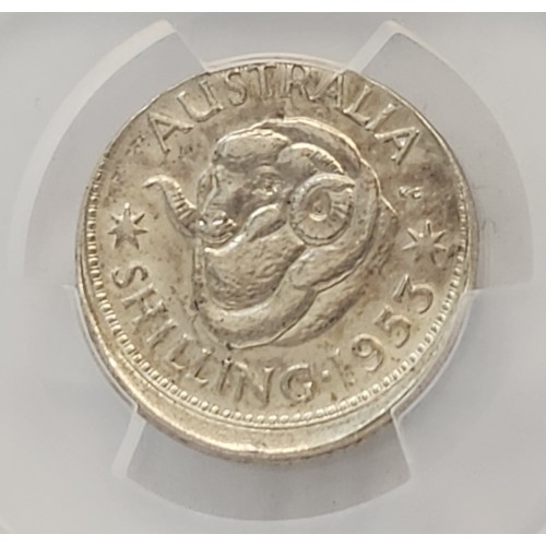 Australia 1953 One 1 Shilling. Error. Broadstruck. PCGS UNC Detail. Genuine.