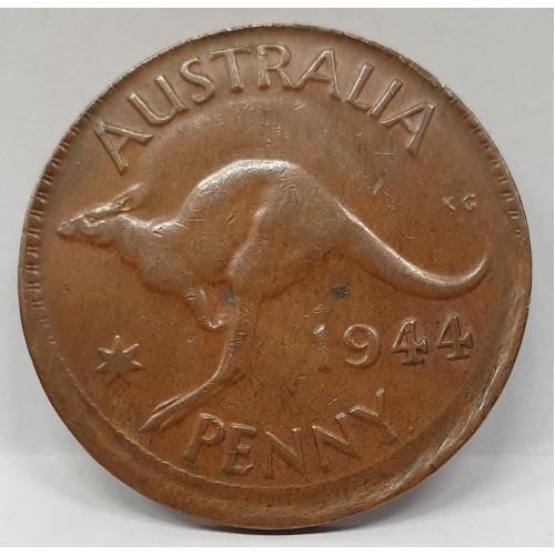 AUSTRALIA 1944 . ONE 1 PENNY . ERROR . MIS-STRIKE . NICE LIP