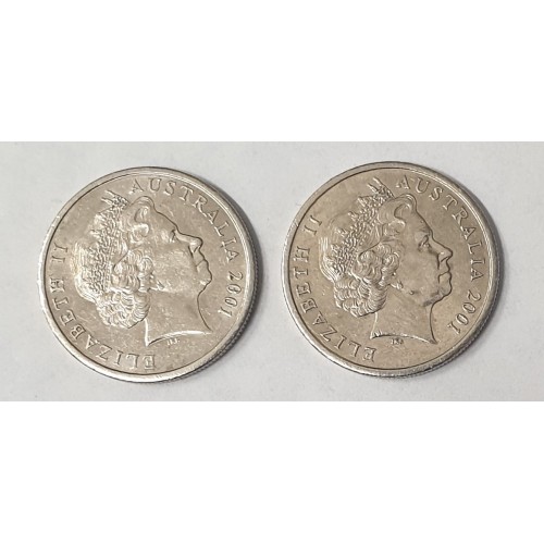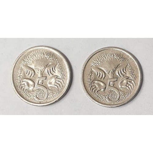 Australia 2001 2x Five 5 Cents Coins. Flamingo Variety. Underrated and Very