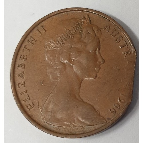 Australia 1966. Two 2 Cents Coin. Error .Bitten Edge. Clipped Planchet. Very