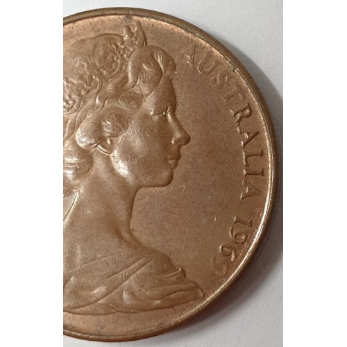 Australia 1969. Two 2 Cents Coin. Error. Soft Stamping in the Legend. Missing the