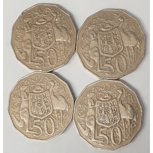 AUSTRALIA 1980 . FIFTY 50 CENTS COINS . VARIETY . SET OF 4 DOUBLE BAR COINS