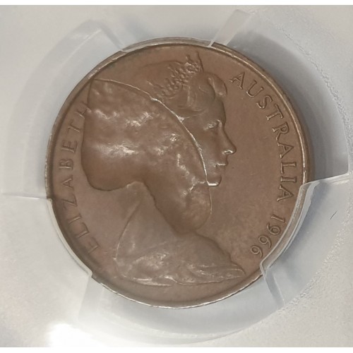 AUSTRALIA 1966 . TWO 2 CENTS . MAJOR ERROR . STRUCK THRU OBVERSE